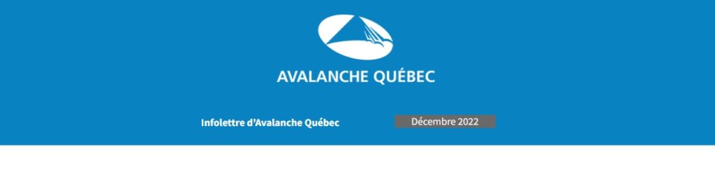 Dans cette infolettre: . Polar Antopo x Avalanche Québec . Projet pilote // Bulletins d’avalanche hors zone . Jeunes en montagne // Places disponibles . Opérations d’avalanche Niveau 1 // Deux dernières places . Quoi regarder ? // Suggestion de l’équipe Cliquez sur l’image ou cliquez ici pour accéder à l’infolettre de janvier 2023.